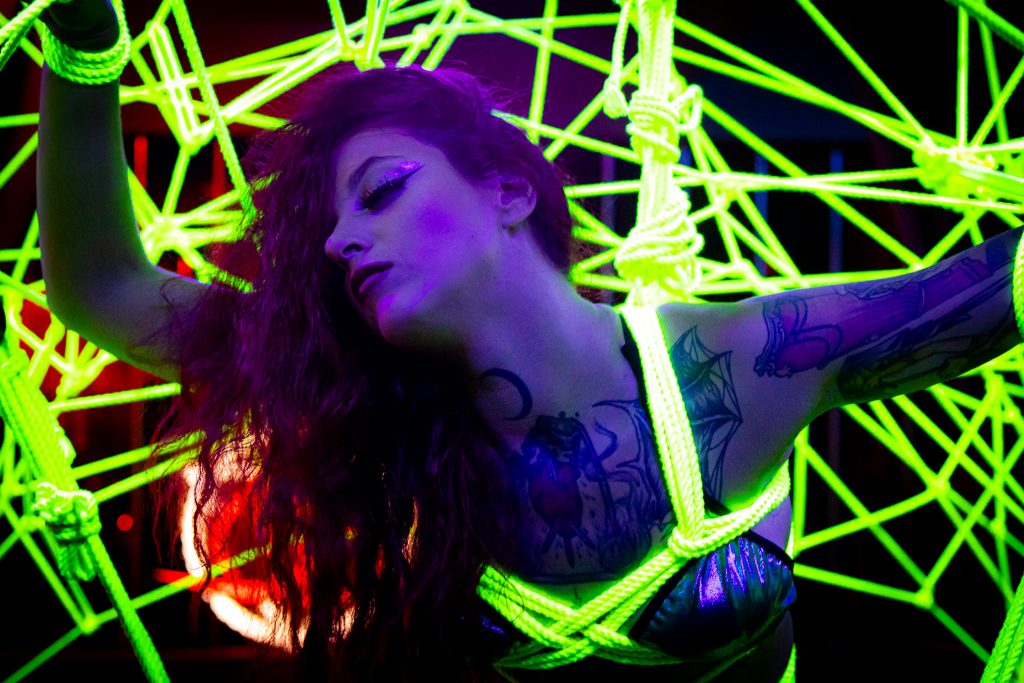 Las cuerdas neones para shibari son una alternativa sintética con altísima pigmentación fluorescente, a las cuerdas de fibra natural teñidas tradicionales.